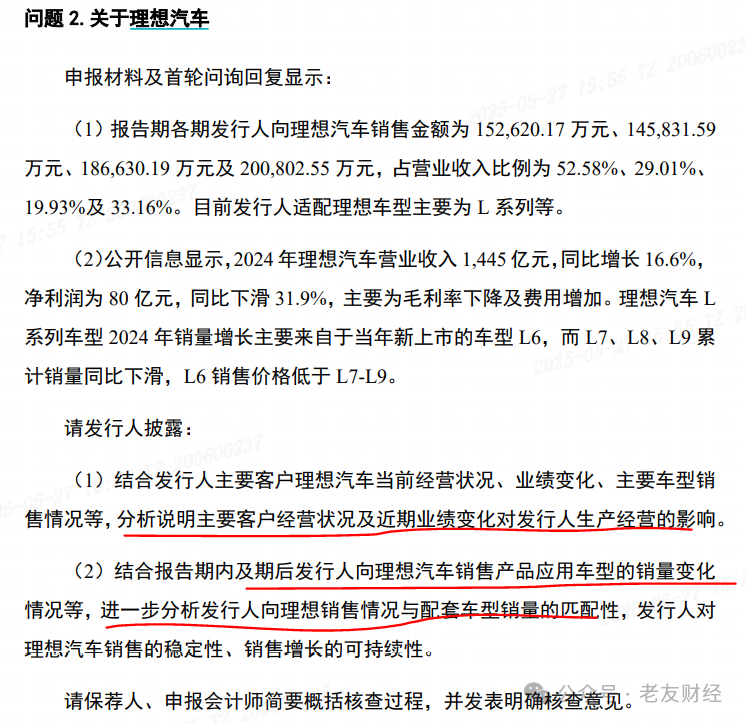 1、主要客户理想汽车经营状况及近期业绩变化对发行人生产经营不存在不利影响;