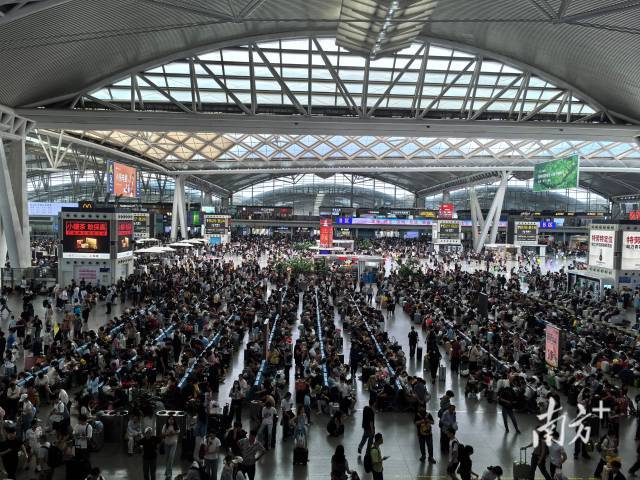 4月29日至5月4日,广州市中心的广州站、广州东站、广州白云站三个站到发旅客合共超200万人次。其中发送旅客1281744人,到达旅客920810人。